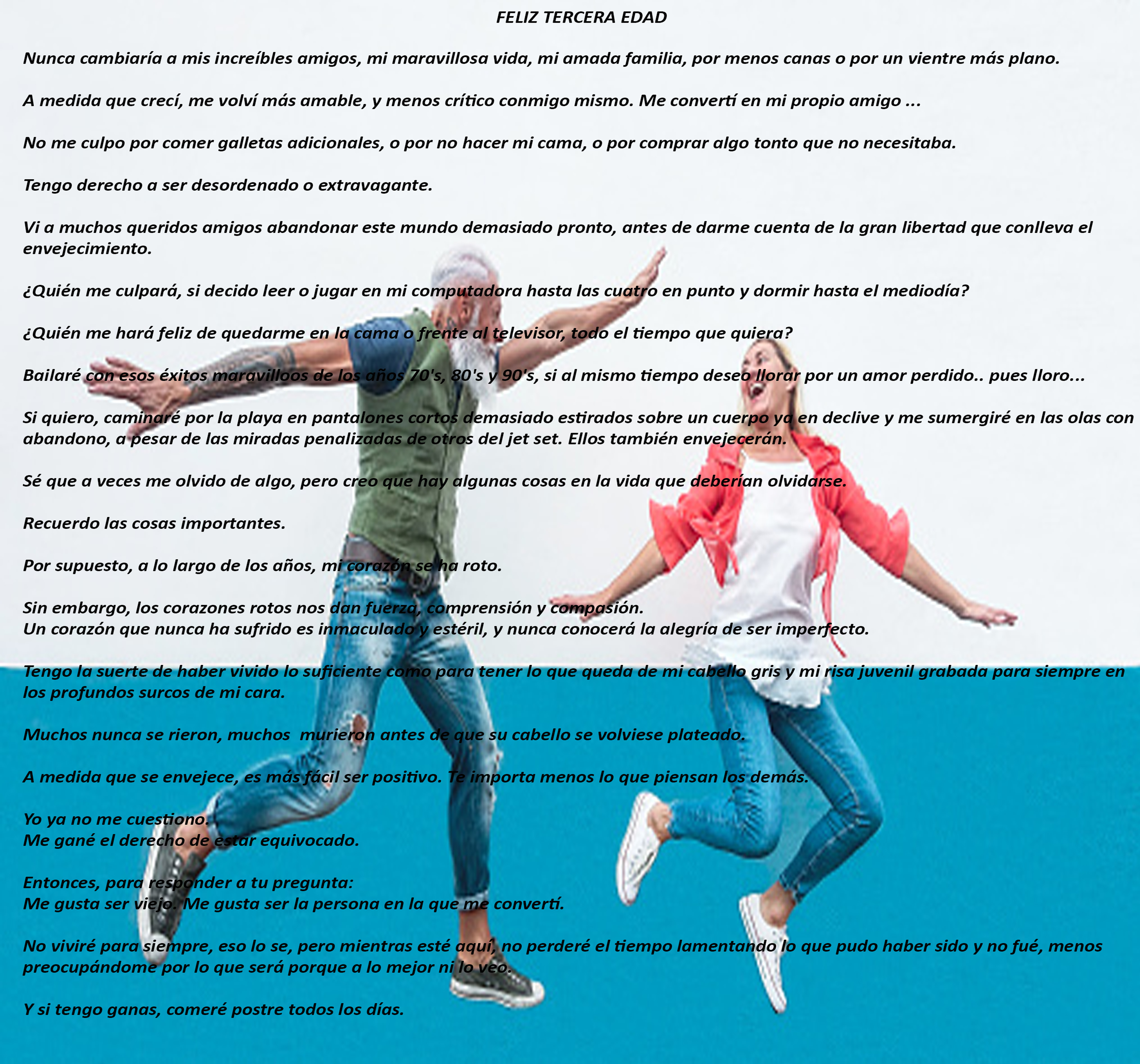 Nunca cambiaría a mis increíbles amigos, mi maravillosa vida, mi amada familia, por menos canas o por un vientre más plano.